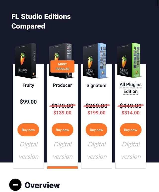 | Fruity Edition | Basic features, suitable for beginners | $99 |