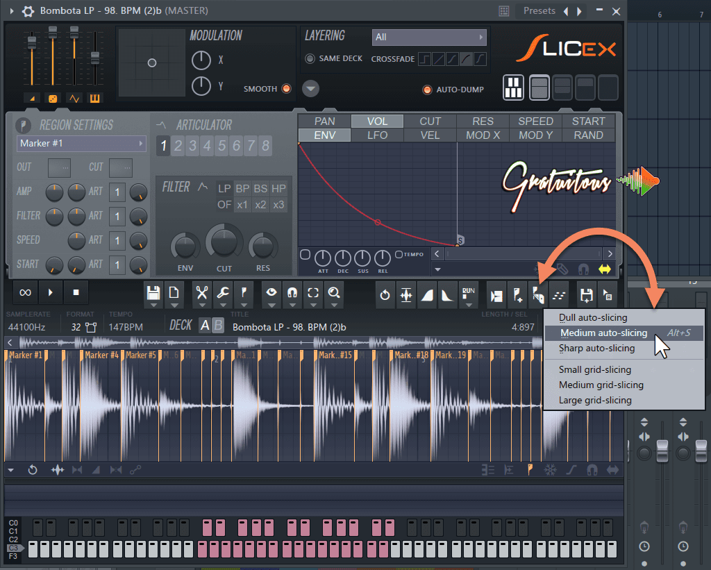 - Automatic Slicing: Slicex can automatically slice your audio into segments.